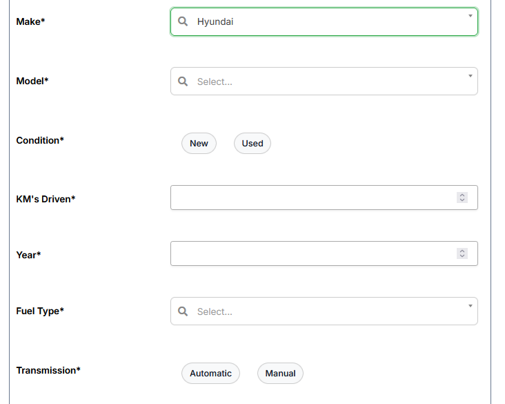 3. Next step to select car brand and according to select your brand other detailed form will appear and every field must be filled wisely as shown in the image.